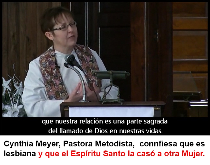 Por su parte, una pastora metodista dice que el Espíritu Santo la unió a ella en una una relación del mismo sexo con otra mujer. Esa misma institución religiosa oficlamente acepta el matrimonio homosexual. La iglesia presbiteriana hace lo mismo.