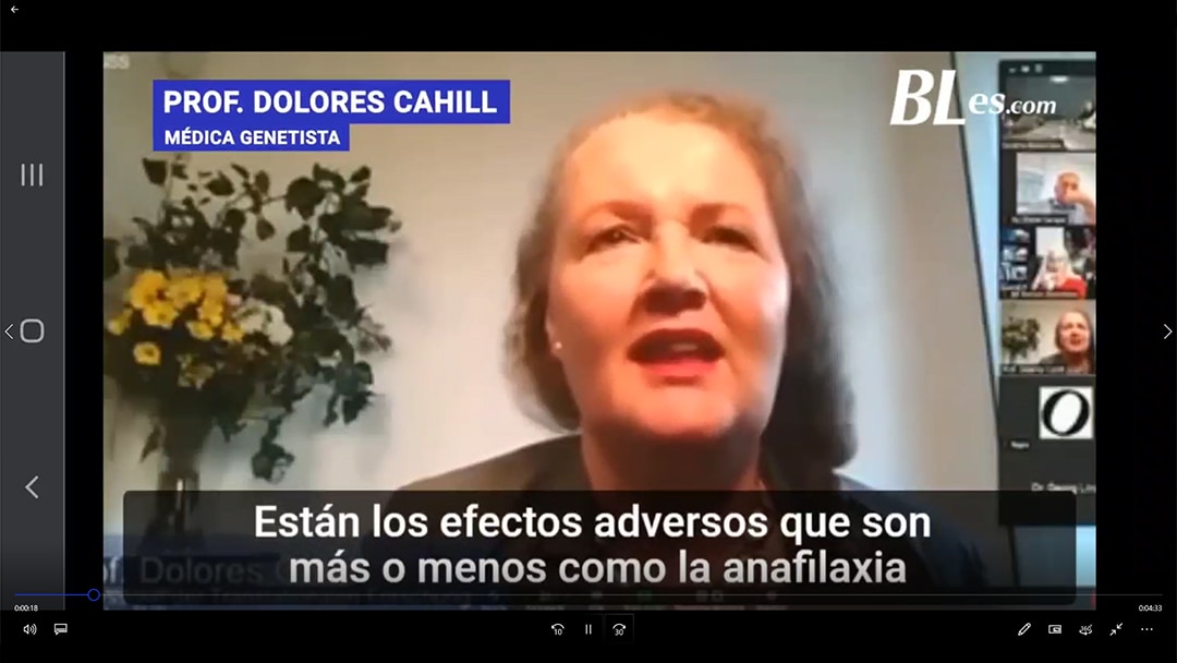 DESCRIPCIÓN: Dolores Cahill, renombrada doctora y científica mundial, genetista molecular, viróloga, inmunóloga y profesora de la Universidad de Dubin en Irlanda suena la alarma sobre el peligro mortal de las vacunas Covid-19. “Lo que hace esta terepia genética es la creación de una enfermedad autoinmune crónica… es actualmente una terapia genética peligrasa“, afirmó Cahill.